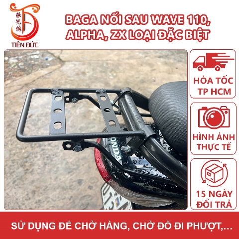 Ràng đồ phía sau xe những kiện hàng nhỏ (ràng hàng hóa, hành lý, đồ đi phượt) đuôi xe nay trở thành nhu cầu của rất nhiều loại xe thiết kế của xe Wave mặc định sẵn là rất khó để ràng đồ, vì chỉ có thể hàng hóa lên yên, sẽ không có độ chắc chắn khi di chuyển. Vậy nên cơ sở baga Nam Phát đã sản xuất Baga chở hàng Nối Sau Wave để đáp ứng nhu cầu đó.