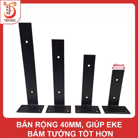 ✅ Bản rộng 40mm: Bản thép to, dày giúp eke bám tường tốt hơn, tăng độ ổn định và thẩm mỹ cho toàn bộ kệ.