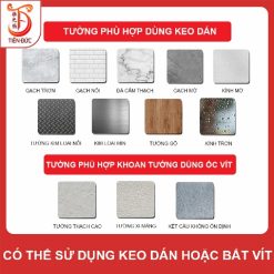 Tùy chỉnh theo nhu cầu: Có thể chọn dán nếu muốn lắp đặt nhanh gọn, hoặc khoan khi cần treo vật nặng thường xuyên.