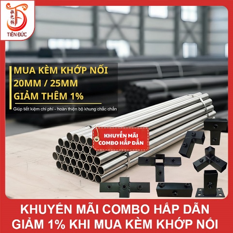 ✅ Khuyến mãi combo hấp dẫn: Khi mua kèm khớp nối 25mm hoặc 20mm, khách được giảm thêm 1%, giúp tiết kiệm chi phí và hoàn thiện bộ khung nhanh chóng – chắc chắn.